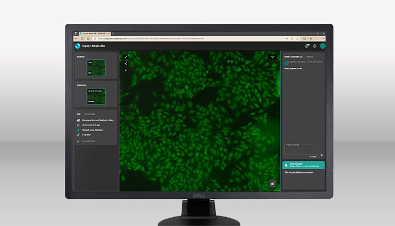 Besides the fluorescence image itself and your enquiry, all relevant information (e.g. substrate, dilution, and instruments used) are transmitted in encrypted form. The interpretation by our experts? Can be accessed with only a few clicks! Benefit from precise fluorescence descriptions and annotations directly in the image and discuss your results directly via the platform – for a second opinion in no time.